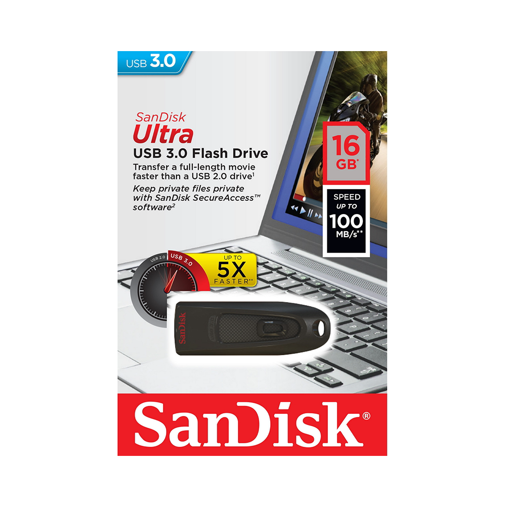 Η μονάδα SanDisk Ultra USB 3.0 Flash Drive συνδυάζει υψηλότερες ταχύτητες μεταφοράς δεδομένων και μεγάλη χωρητικότητα σε ένα συμπαγές, κομψό περίβλημα. Αφιερώστε λιγότερο χρόνο περιμένοντας και μεταφέρετε αρχεία στη μονάδα έως και δέκα φορές πιο γρήγορα σε σχέση με μια συνηθισμένη μονάδα USB 2.0. Χάρη στη χωρητικότητα έως και 512GB, η μονάδα μπορεί να αποθηκεύσει τα πιο μεγάλα αρχεία και έγγραφά σας.